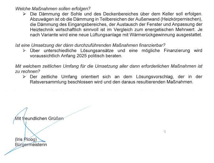 Antwortschreiben der Bürgermeisterin vom 13.01.2025