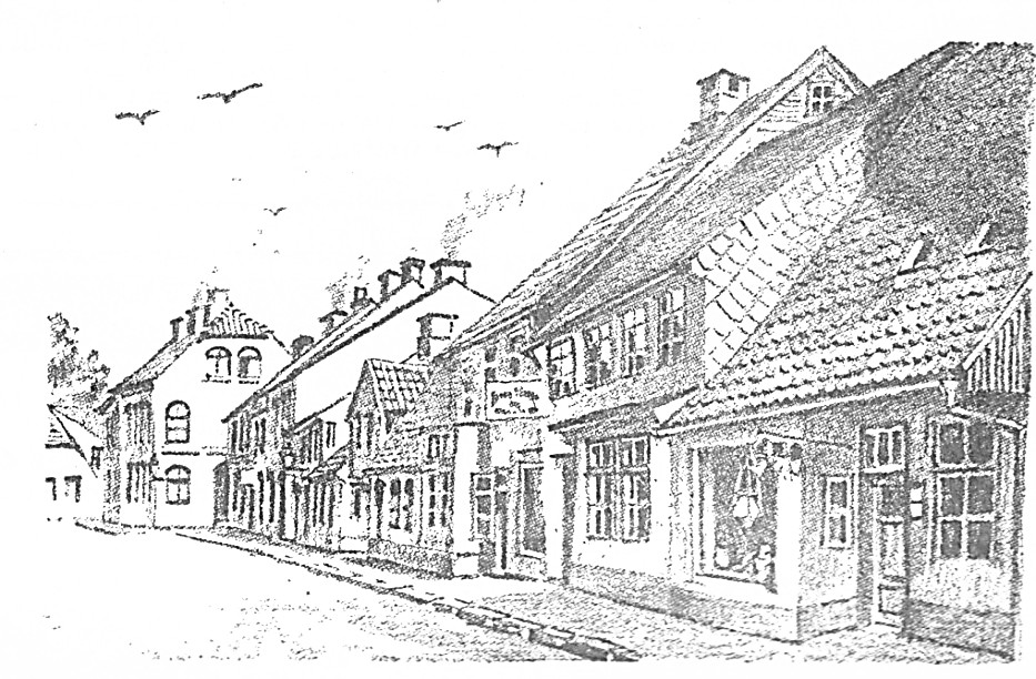 Bäckerei Tietje (schemenhaft zu erkennen die Gaslaterne), Wohnhaus Fischer Mumm,