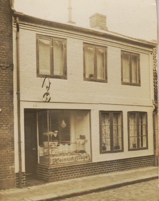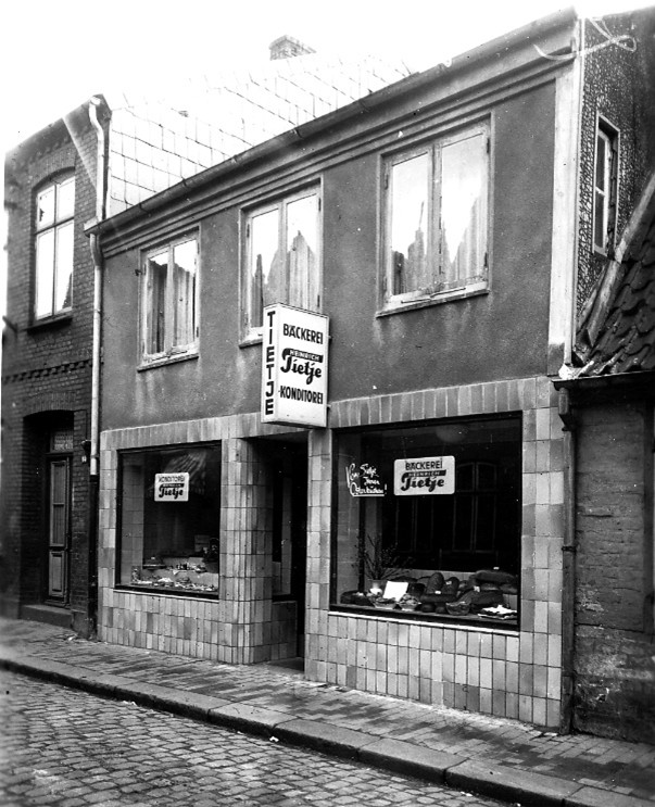 Der Laden der Bäckerei und Konditorei Tietje Ottestraße 12 mit dem dazugehörigen Haus Nr. 14; ehemals H. Loelkes Fischkistenfabrikant gehörend.