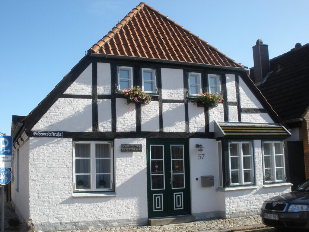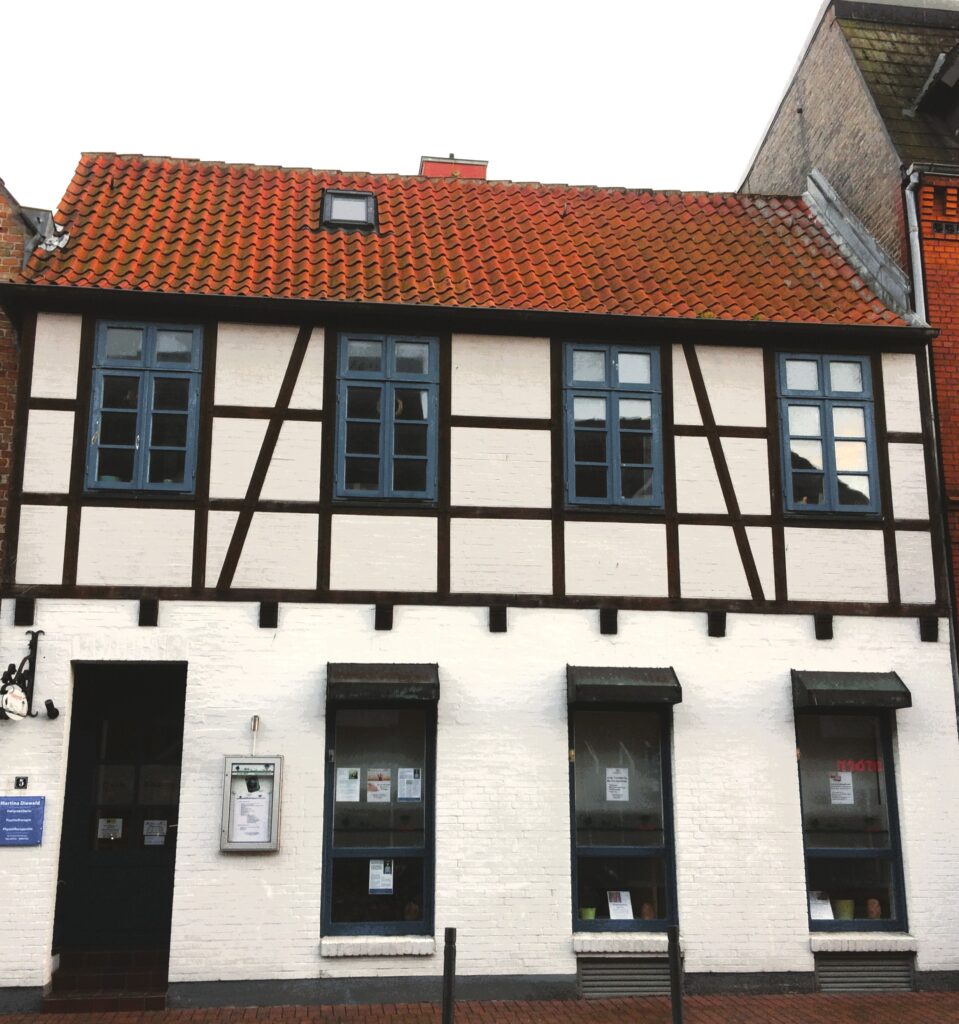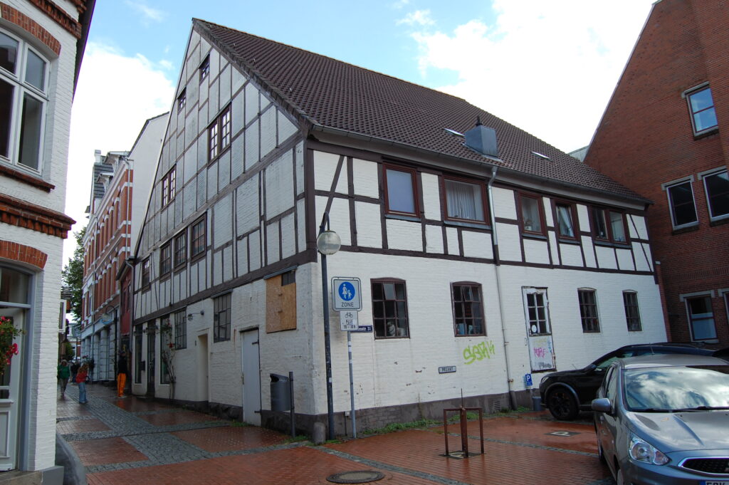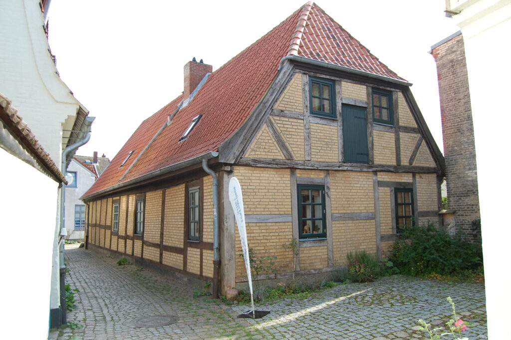 Auch in der Eckernförder Altstadt finden wir in bunter Mischung mit anderen Bauweisen und Fassadengestaltungen das „Fachwerk“ sowohl als tragende Konstruktion des Gebäudes oder aber als übriggebliebenes Fragment in Folge von Umbaumaßnahmen.