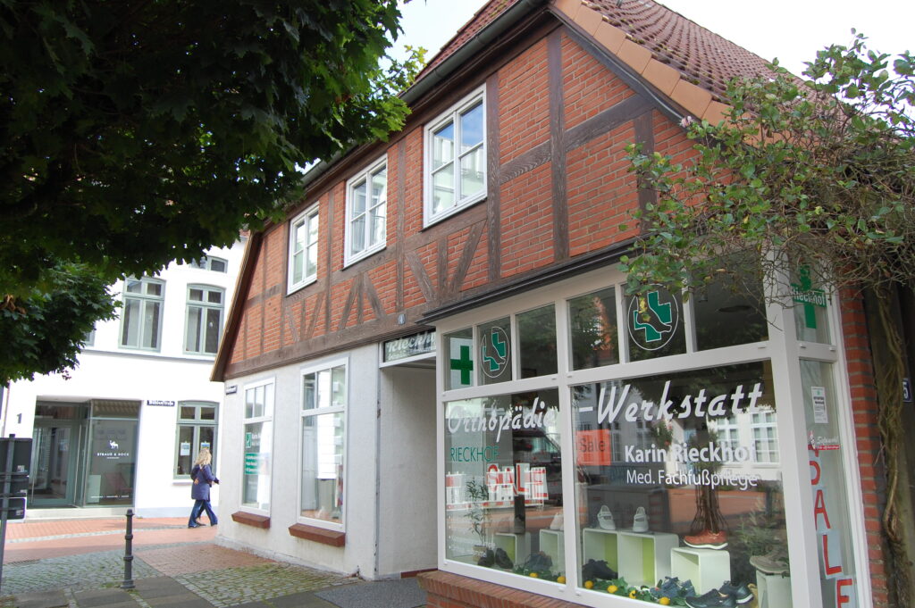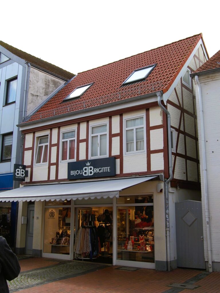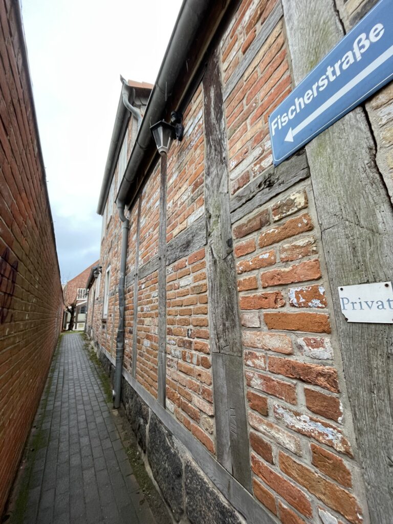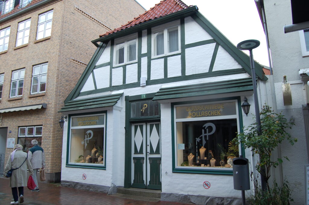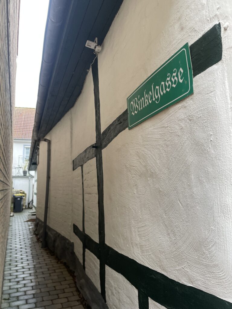 Auch in der Eckernförder Altstadt finden wir in bunter Mischung mit anderen Bauweisen und Fassadengestaltungen das „Fachwerk“ sowohl als tragende Konstruktion des Gebäudes oder aber als übriggebliebenes Fragment in Folge von Umbaumaßnahmen.