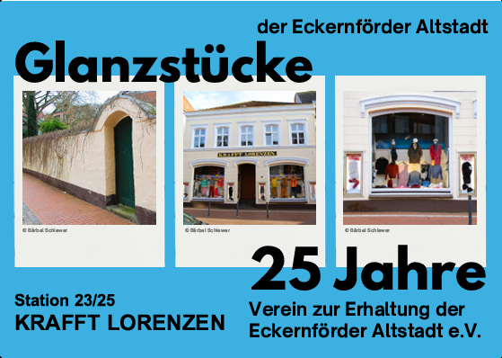 Im Rahmen seines 25-jährigen Jubiläums nimmt der Altstadtverein Eckernförde dies zum Anlass, mal wieder auf solche „Glanzstücke“ aufmerksam zu machen. Diese hätten auch, Juwel, Kostbarkeit, Meisterleistung oder neudeutsch Highlights der Altstadt genannt werden können. Letztendlich beschreibt der Begriff “Glanzstück“ genau die feine und besondere Erscheinung der Gebäude und Straßen in der Eckernförder Altstadt.